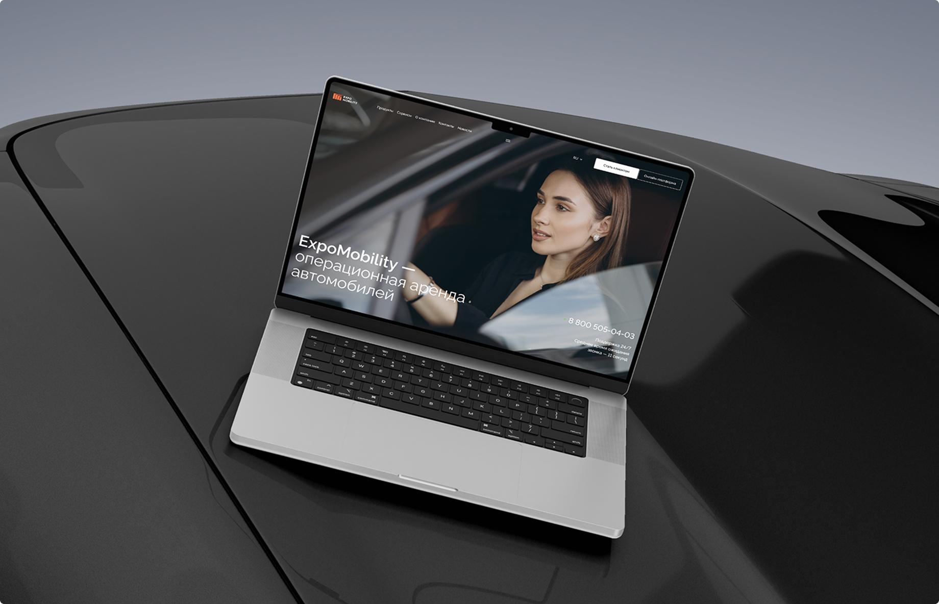 Flexi Rent является суббрендом ExpoMobility, поэтому в рамках разработки дизайна сайта мы собрали фирменный стиль, имеющий общие черты с главным брендом и уникальные особенности. Узнаваемым элементом стал фирменный градиент от голубого к светло-оранжевому. В минималистичный дизайн органично интегрированы стильные 2D-модели автомобилей, а сдержанная анимация добавляет интерфейсу динамики и современности.